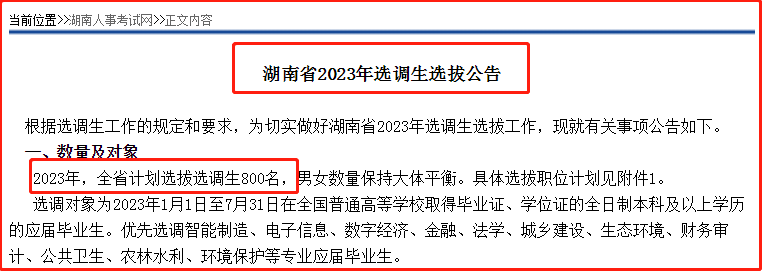 2023年,全省计划选拔2023届选调生800名。