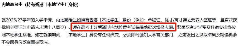 虽然香港城市大学尚未公布2026学年内地高考生申请的详细要求,但参考其他采取独立招生模式的港校,可以预估大致流程。