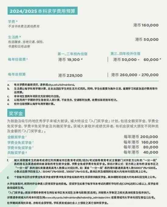 奖学金政策方面,城大一直设有丰富的奖学金计划以鼓励优秀学生就读。高考成绩特别优异者,在入读时可获得不同种类的“入门奖学金”,包括全额奖学金、学费全免奖学金、学费半免奖学金及共融奖学金。