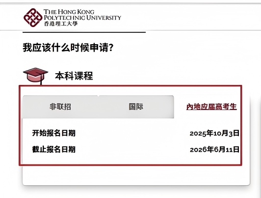 香港理工大学 2026 年面向内地的本科申请通道,定于 2025 年 10 月 3 日正式开启。相关时间安排及政策细节,可参考学校官网公示