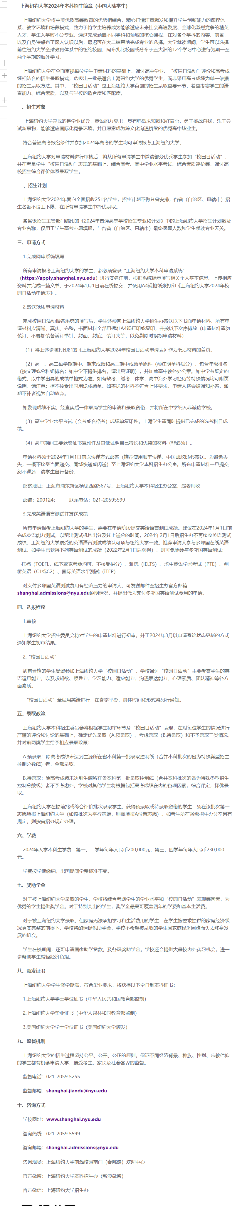招生专业:上海纽约大学新生入学时不分专业,学生可在大学二年级根据个人兴趣和未来人生规划自主选择专业。