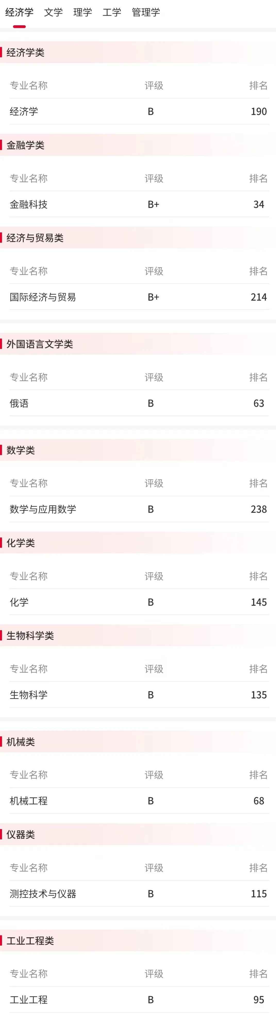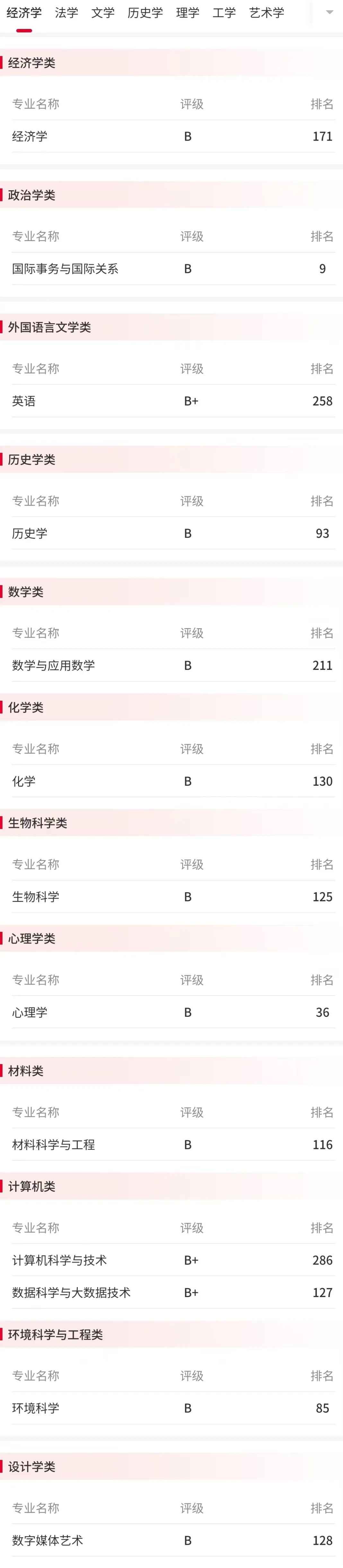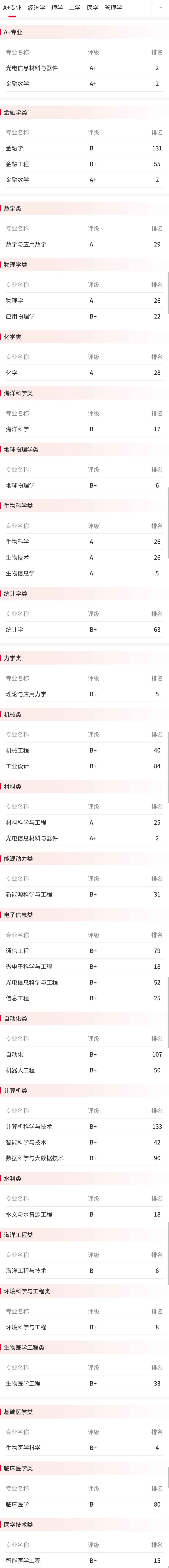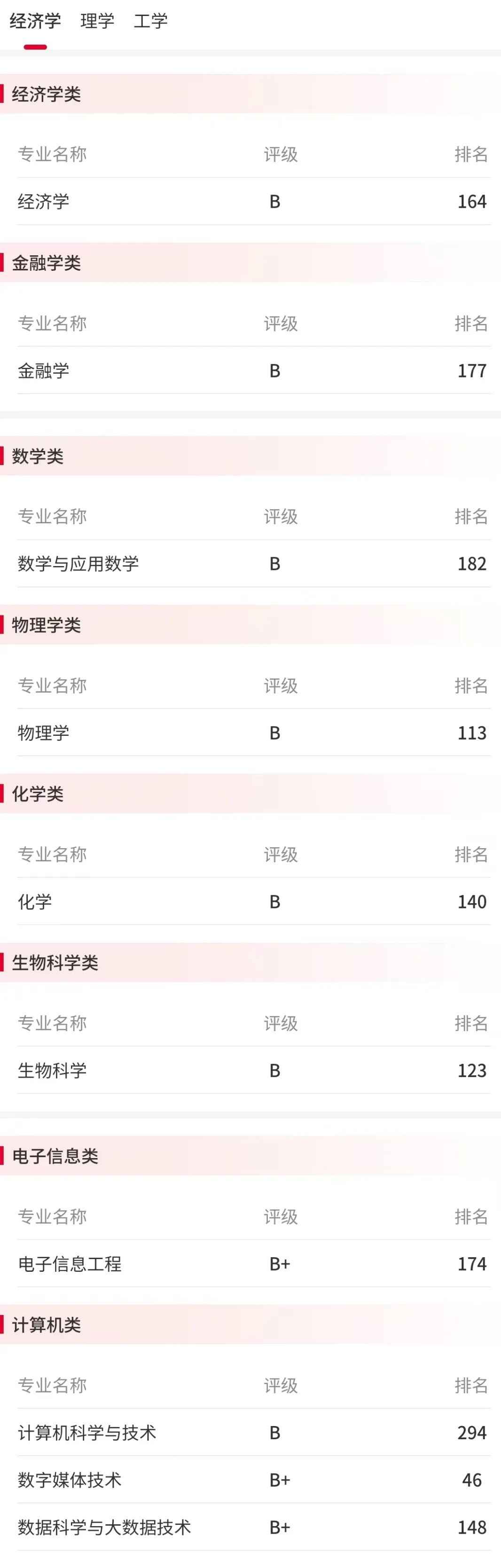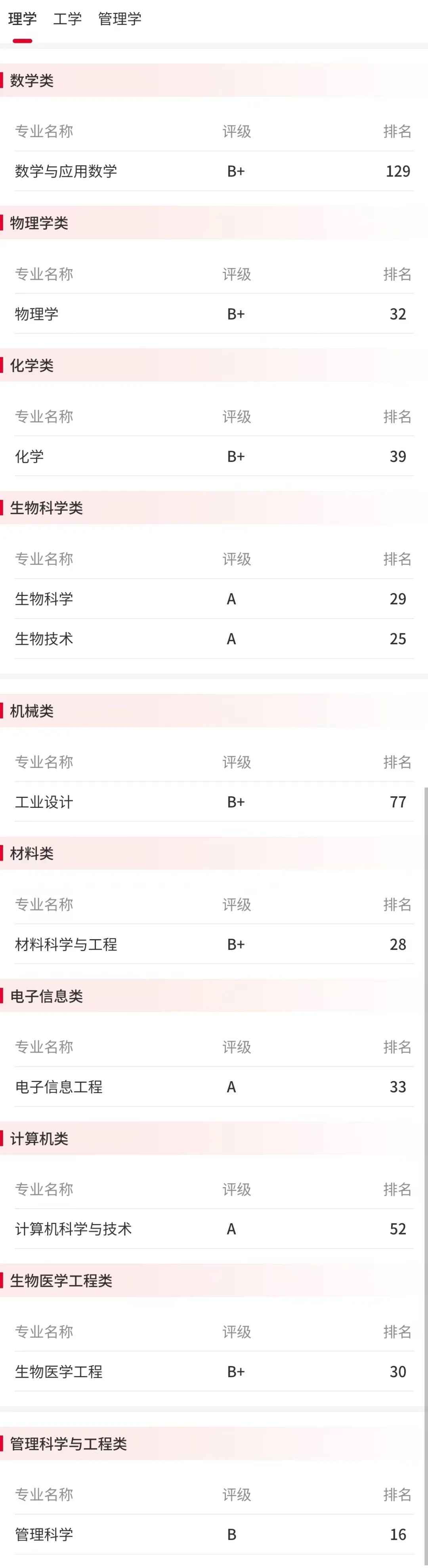 A+:数学、物理学、化学、天文学、地理学、大气科学、海洋科学、地球物理学、地质学、生物学、系统科学、生态学、电子科学与技术、计算机科学与技术、环境科学与工程、农业资源与环境、水产、药学