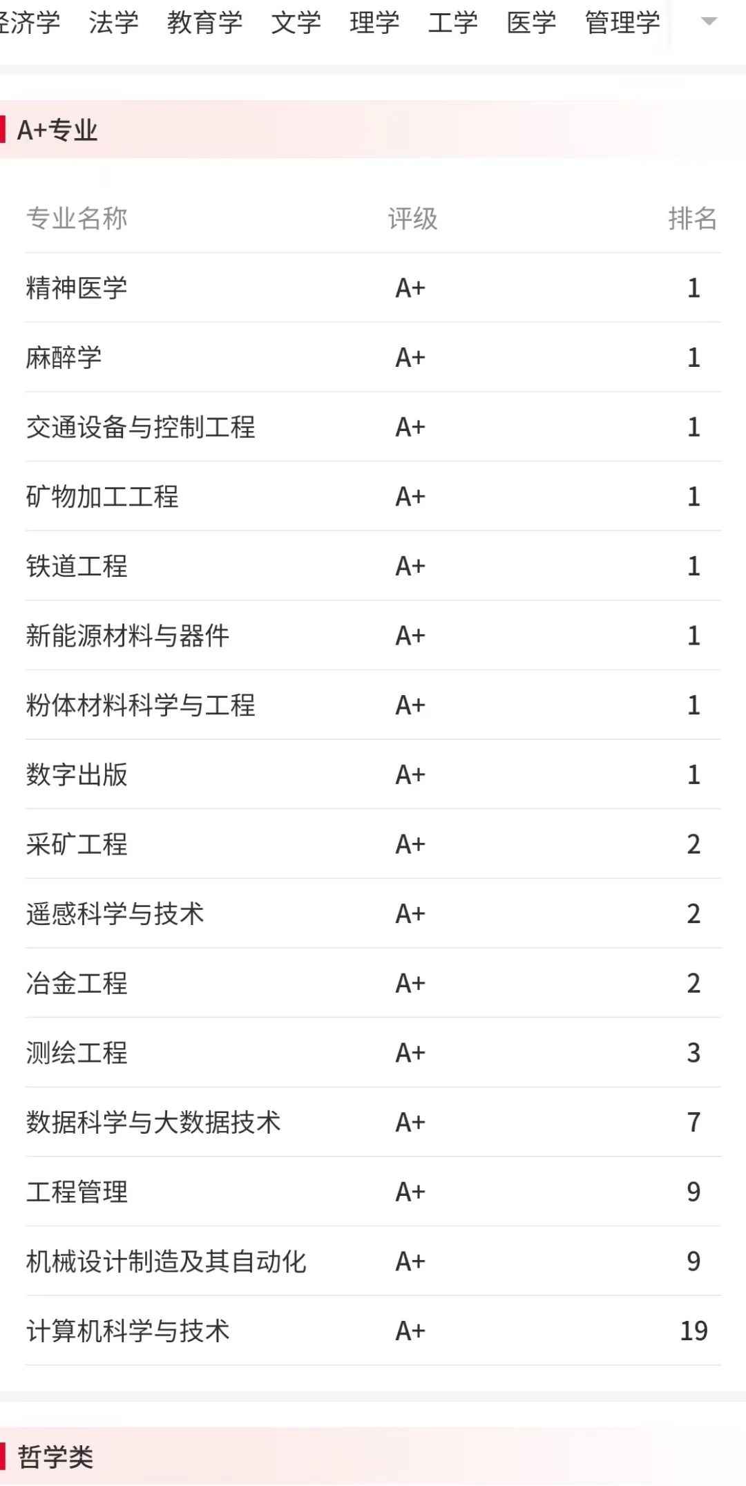 数学、材料科学与工程、冶金工程、矿业工程、交通运输工程 5 个学科入选国家 “双一流” 建设学科。