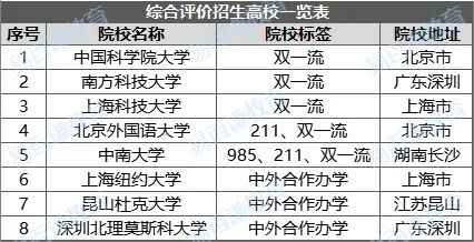 这些学校通过综合评价方式选拔与学校培养特色相匹配的优秀学生。