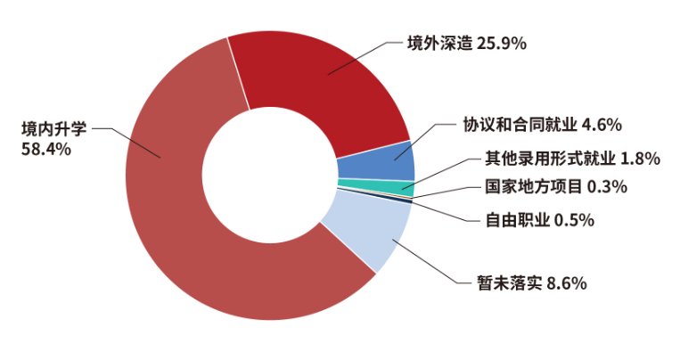 与南科大总体深造率接近80%相媲美,上科大2024届本科毕业生深造率高达84.3%(境内58.4%,境外25.9%),显示出学生培养质量获得了国内外顶尖院校的广泛认可。