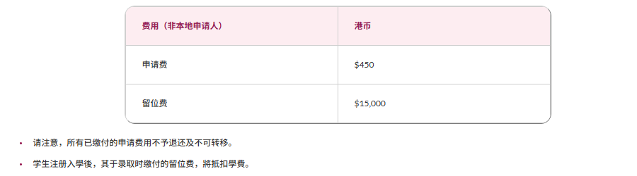 非本地申请人的申请费用为港币450元,留位费15000港币。