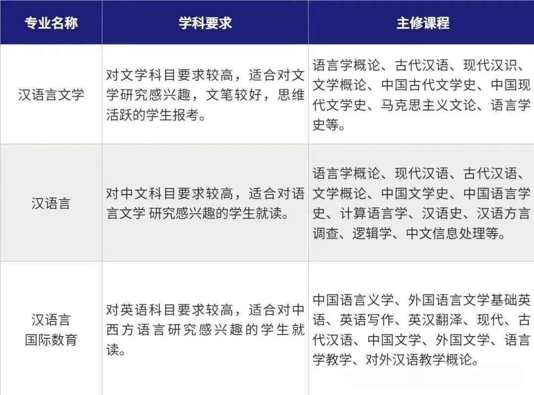 汉语言文学:侧重文学,培养作家、编辑、语文教师等。