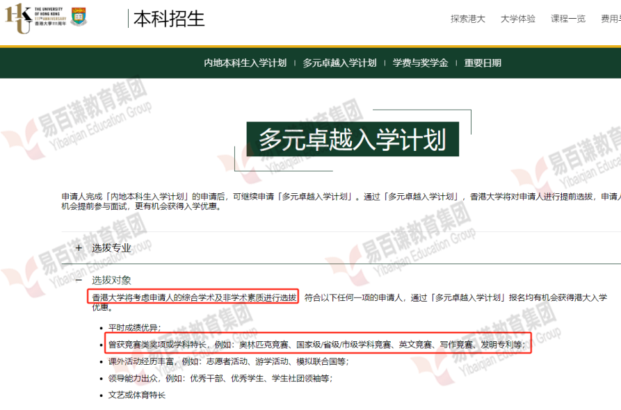 香港大学多元卓越入学计划