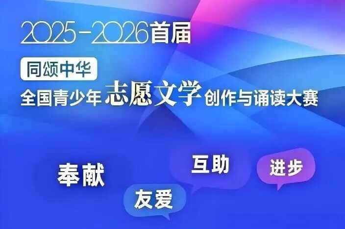 2025-2026年首届“同颂中华·全国青少年志愿文学创作与诵读大赛”于2026年1月7日正式开放报名通道,长按下方图片识别二维码进入大赛专区报名。