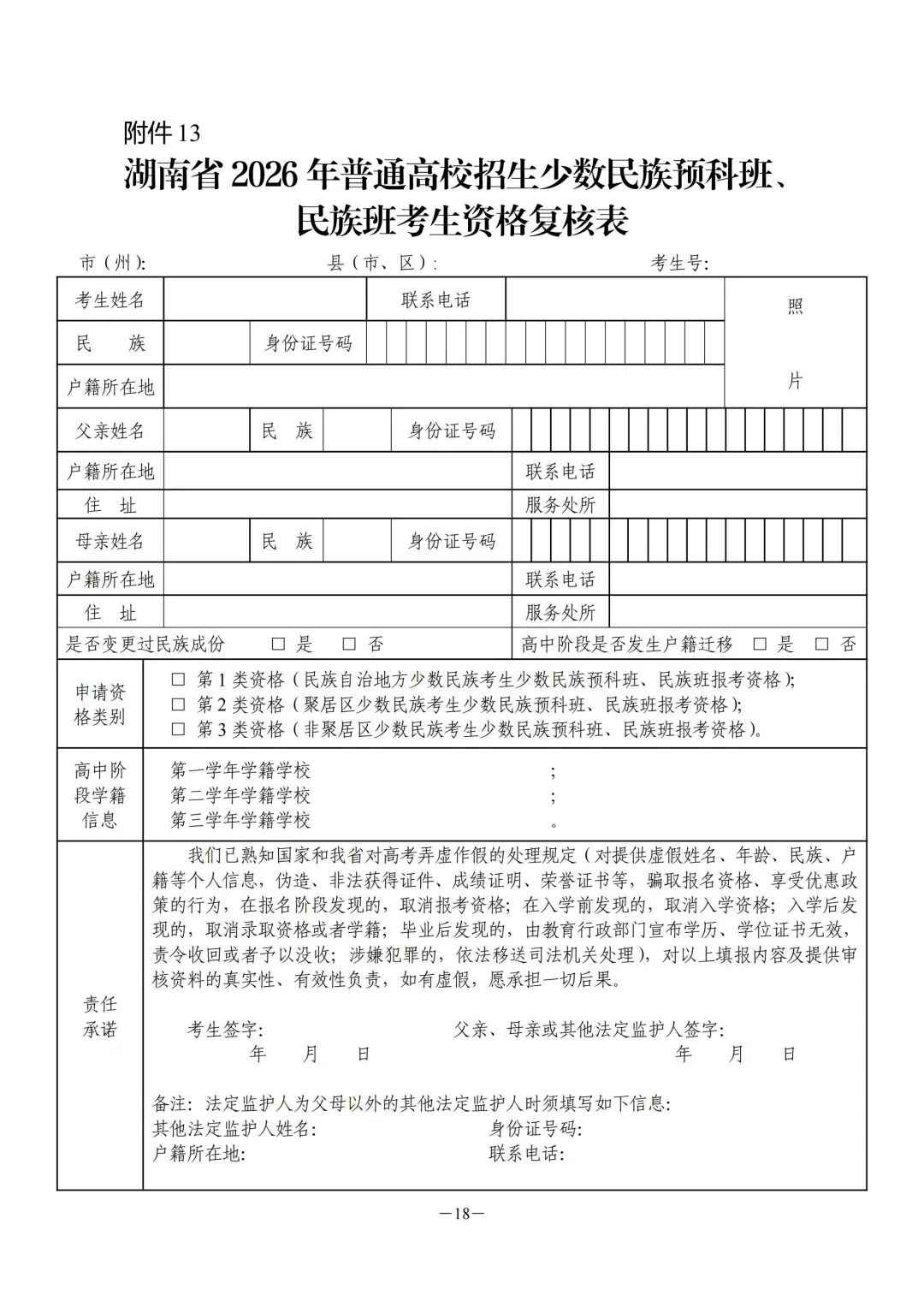 附件:1.湖南省普通高校招生享受少数民族优惠加分政策考生资格审核表